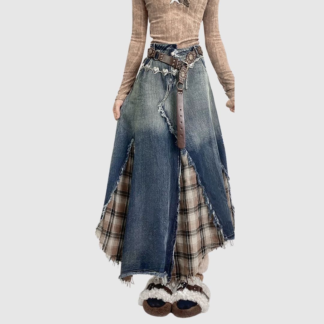 トレンド感のあるイレギュラーヘムが特徴的なデニムスカート。