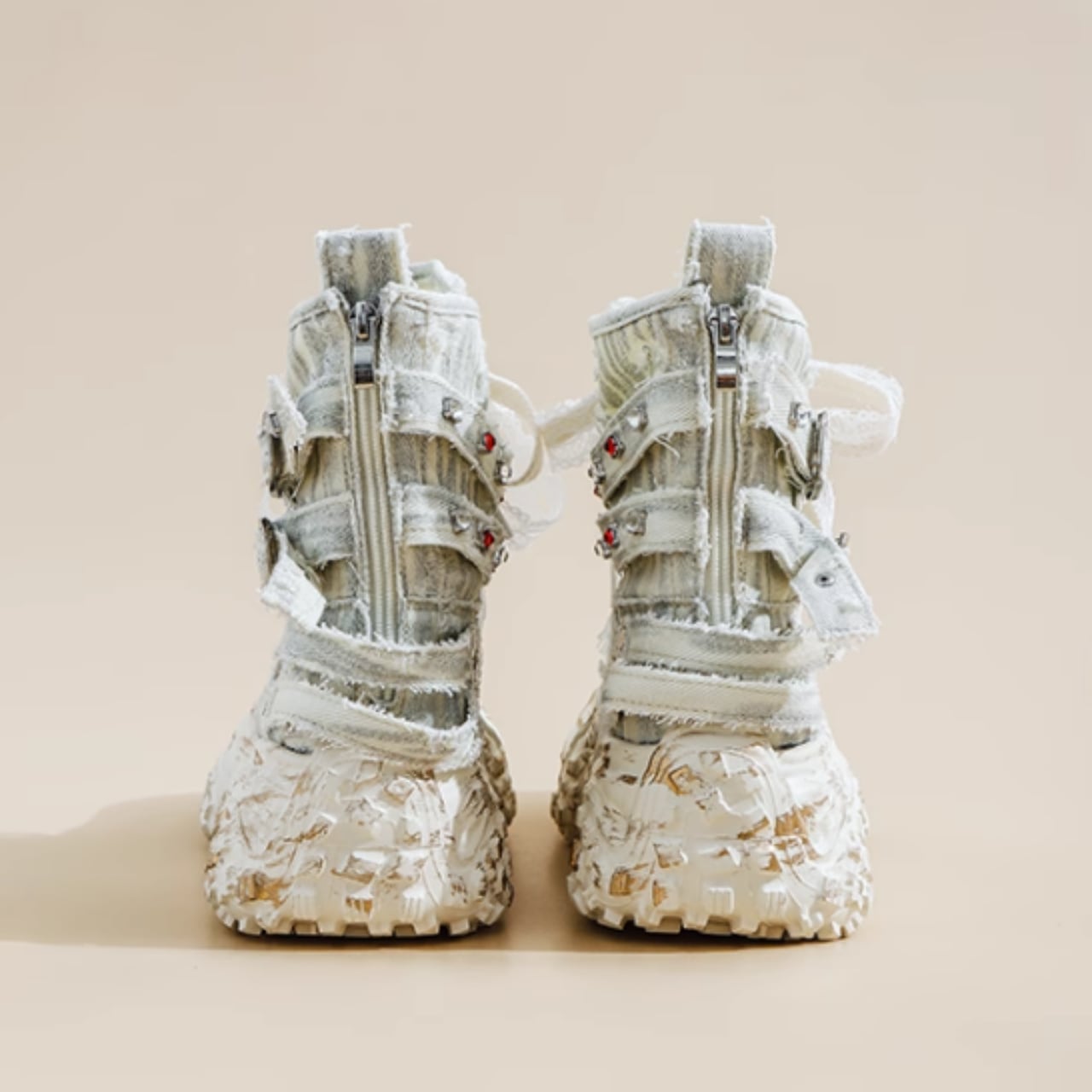 洗練されたデザインとゴツめのソールが絶妙に調和したハイカットスニーカーブーツ。