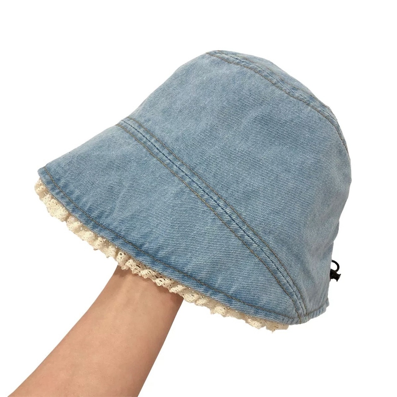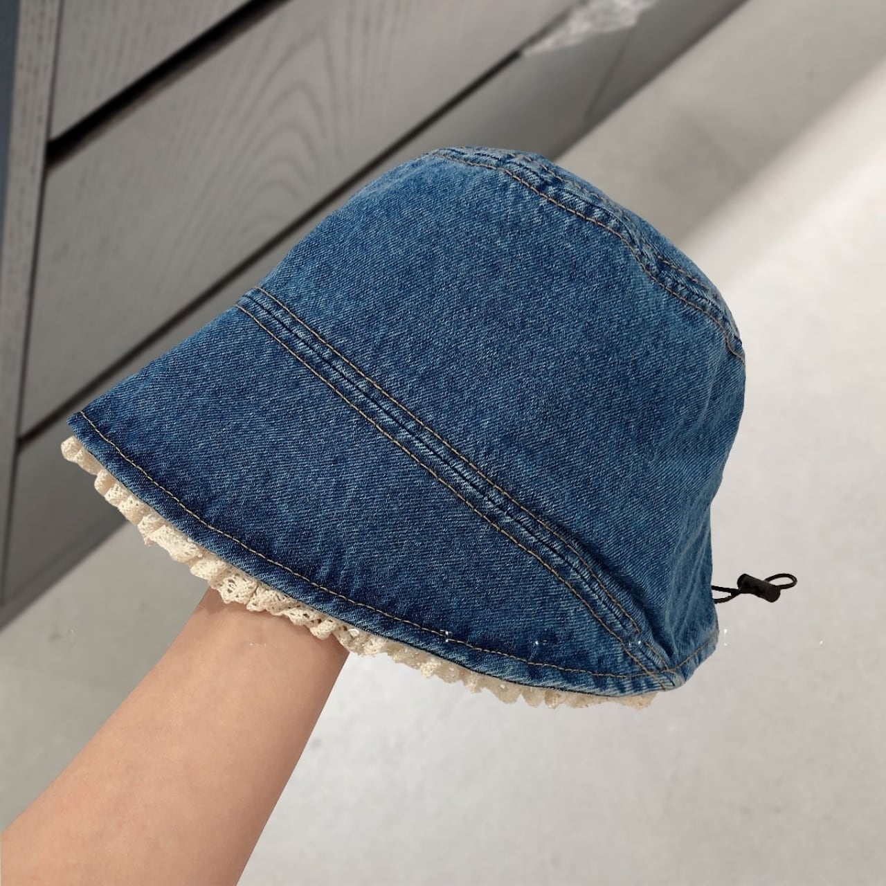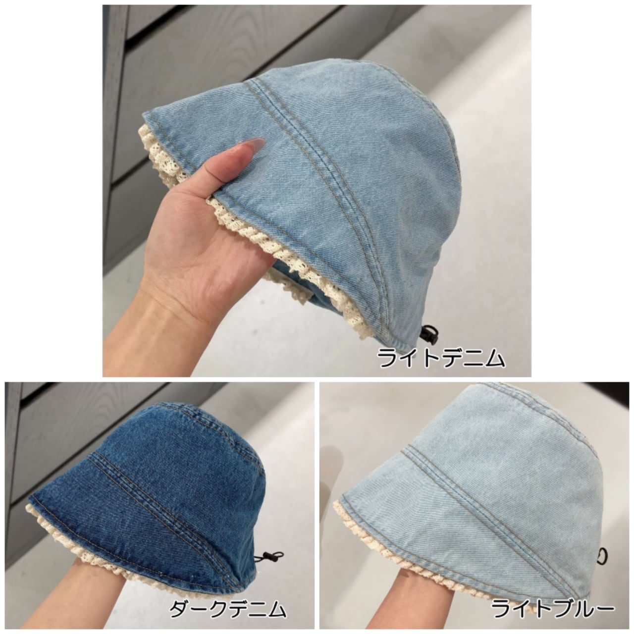 洗練された切り替えデザインとちらっと見えるレースが印象的なデニムハット。