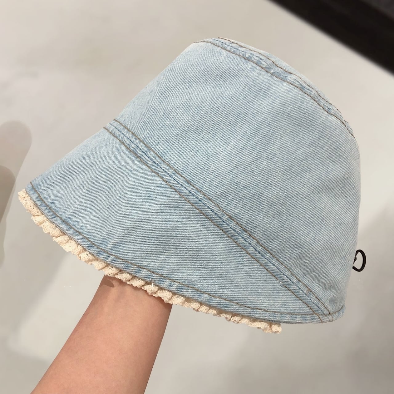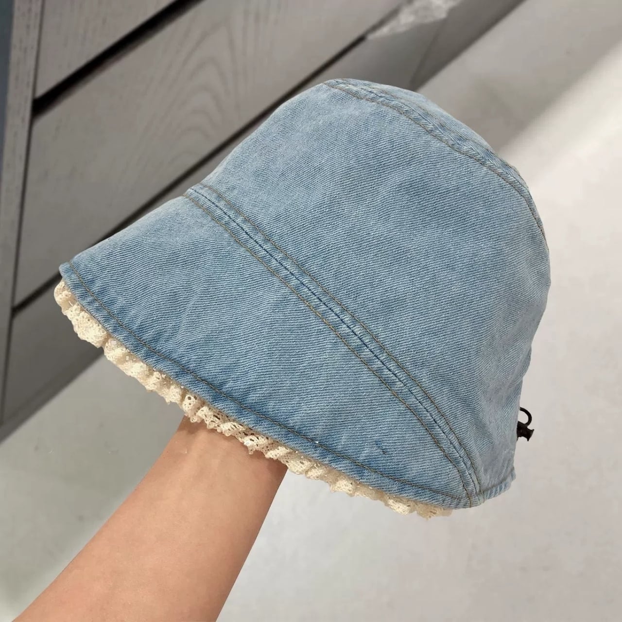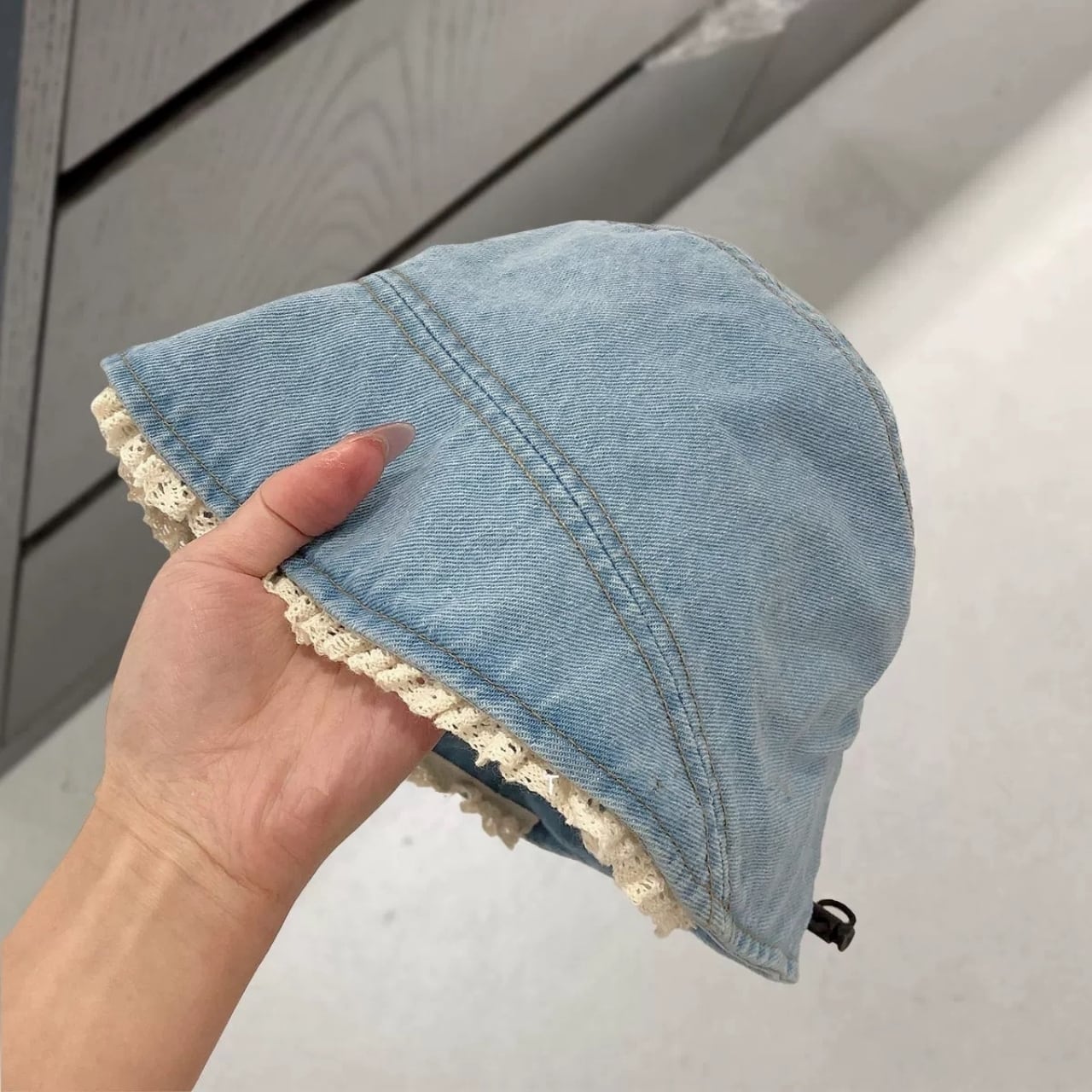 洗練された切り替えデザインとちらっと見えるレースが印象的なデニムハット。