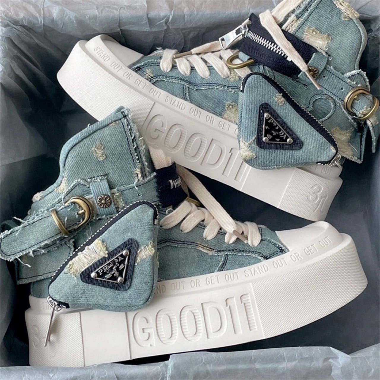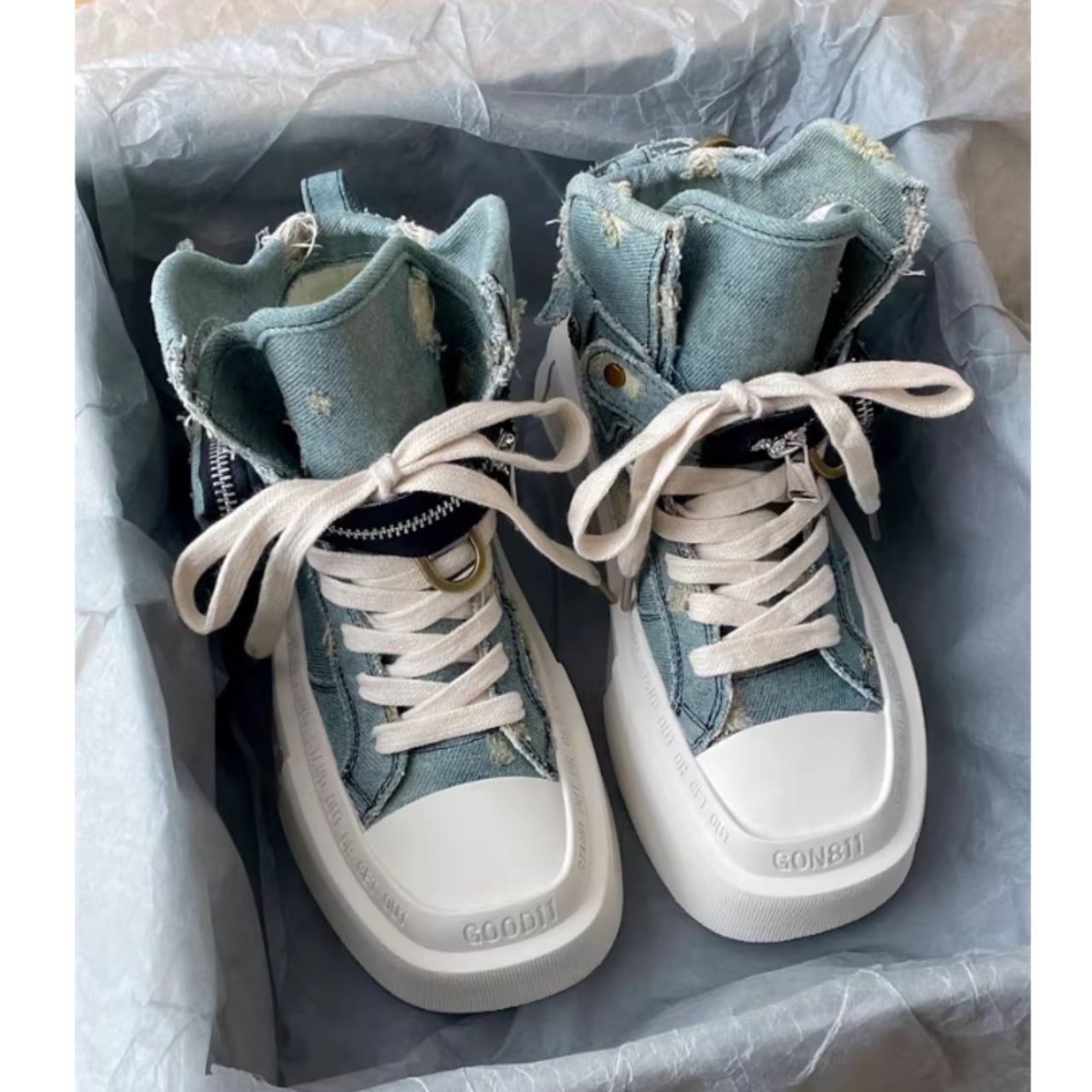 Platform high-cut denim sneakers D0157