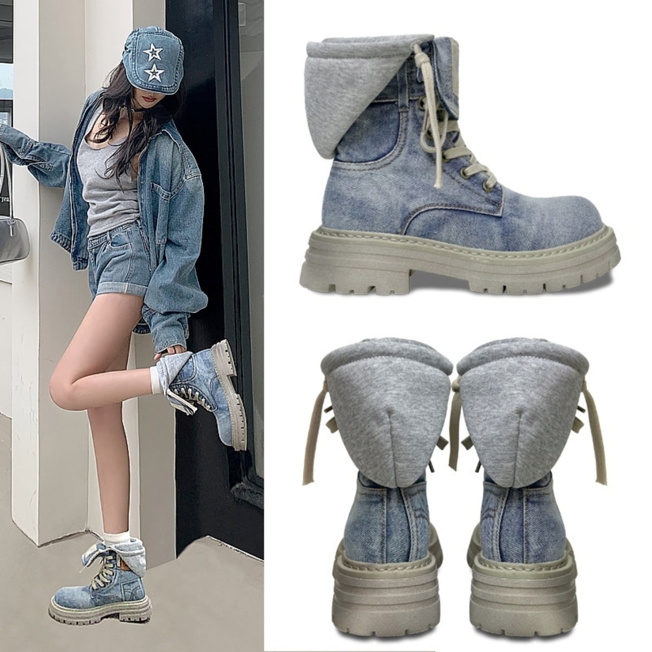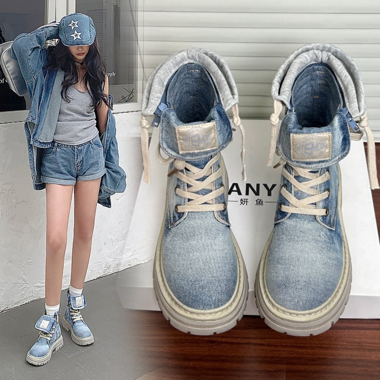 High cut denim boots D0158