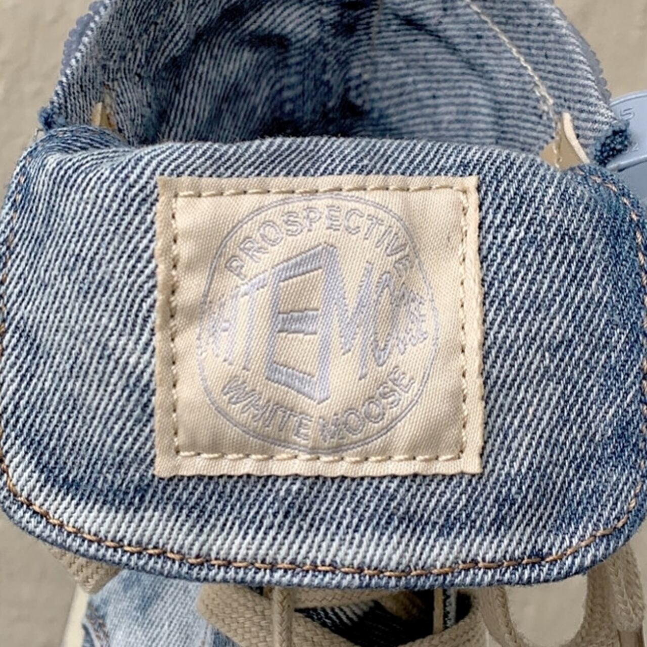 ユニークなデザインが特徴のハイカットデニムブーツ。