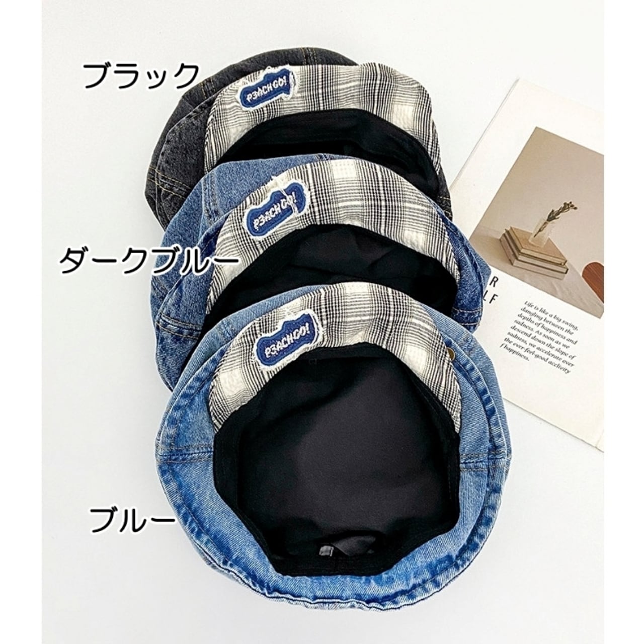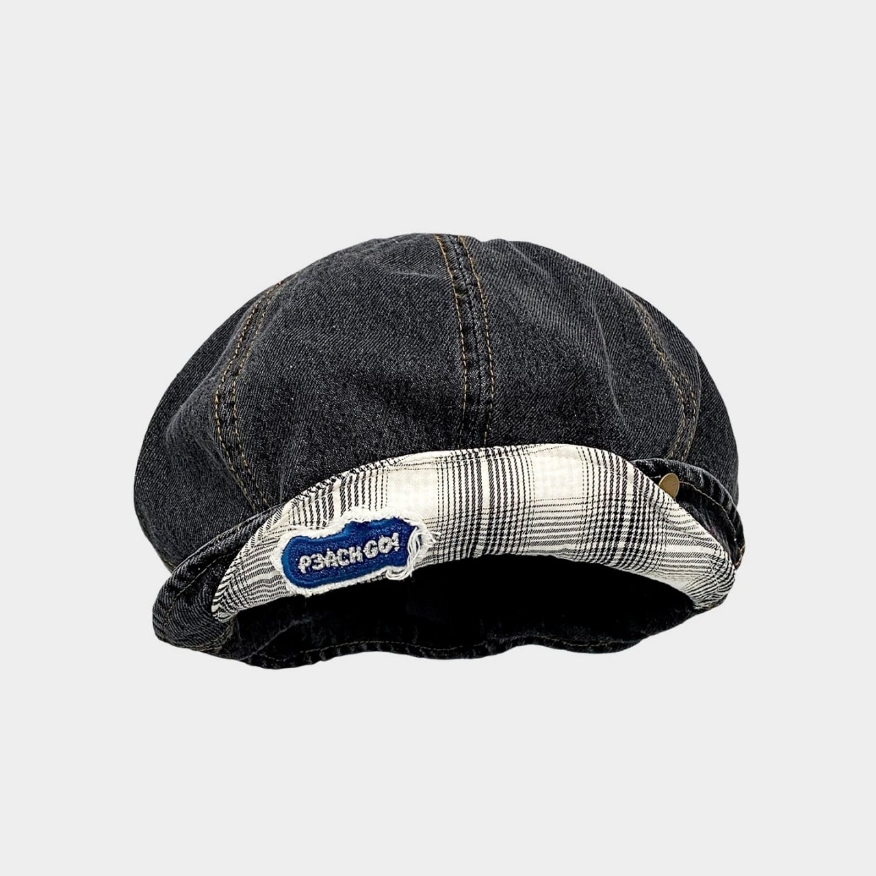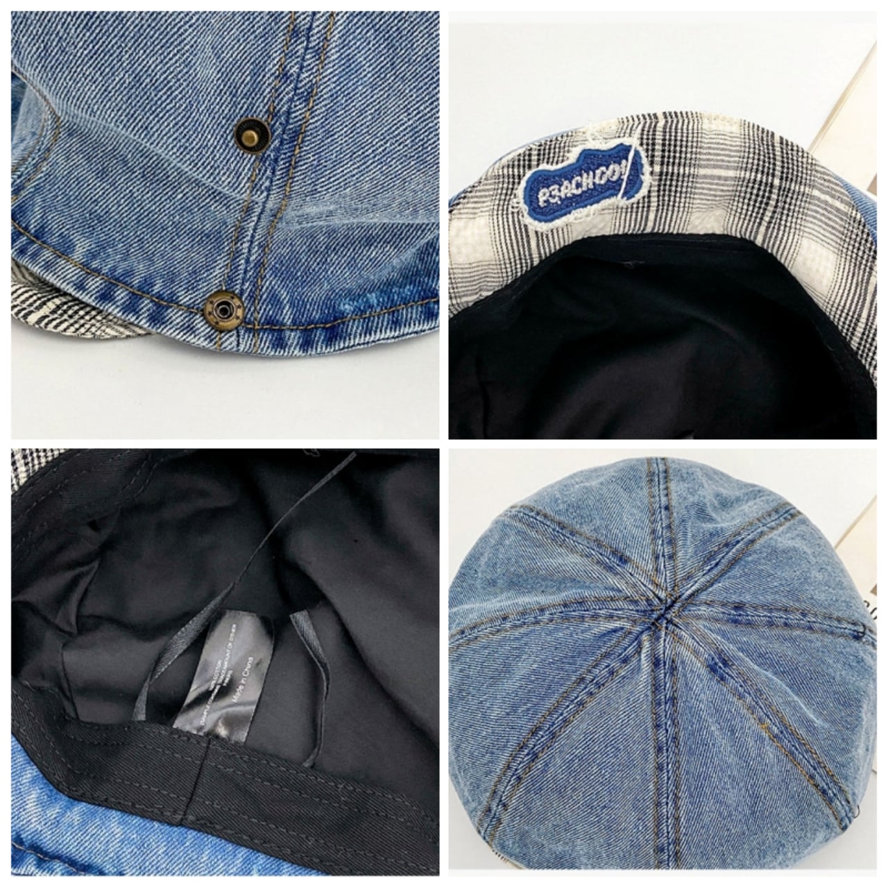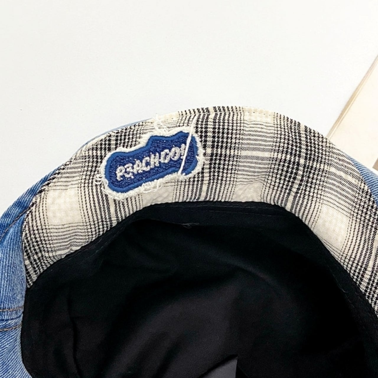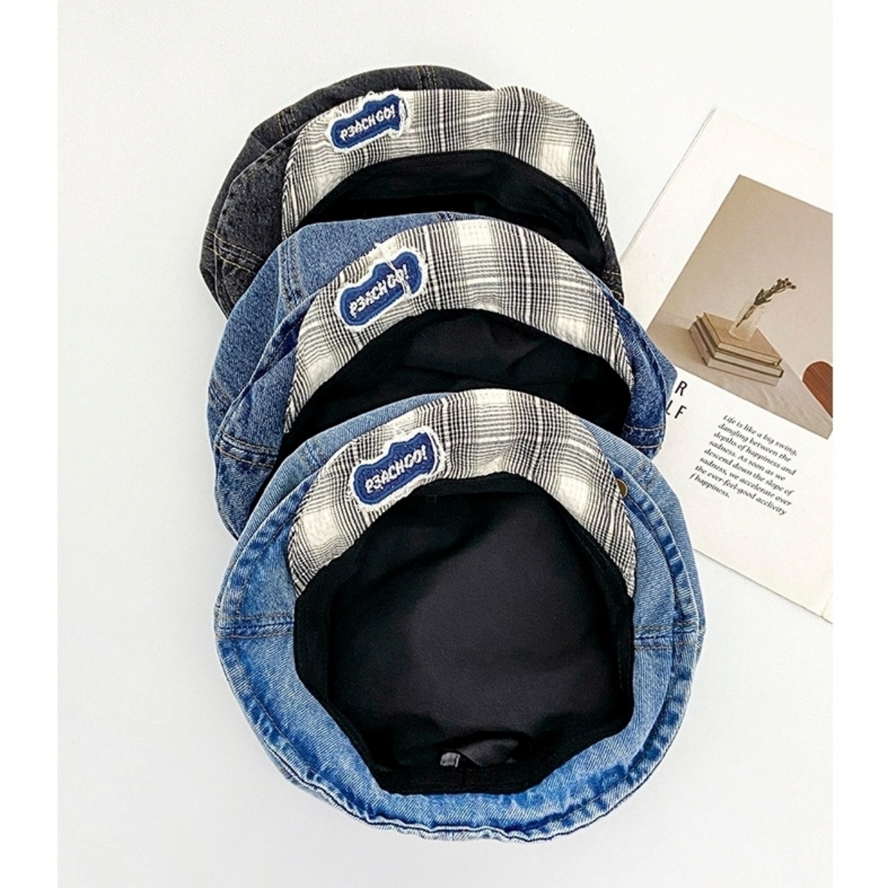 チェック柄がアクセントとなったガーリーなデニムベレー帽。