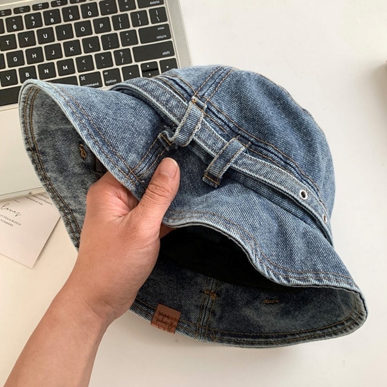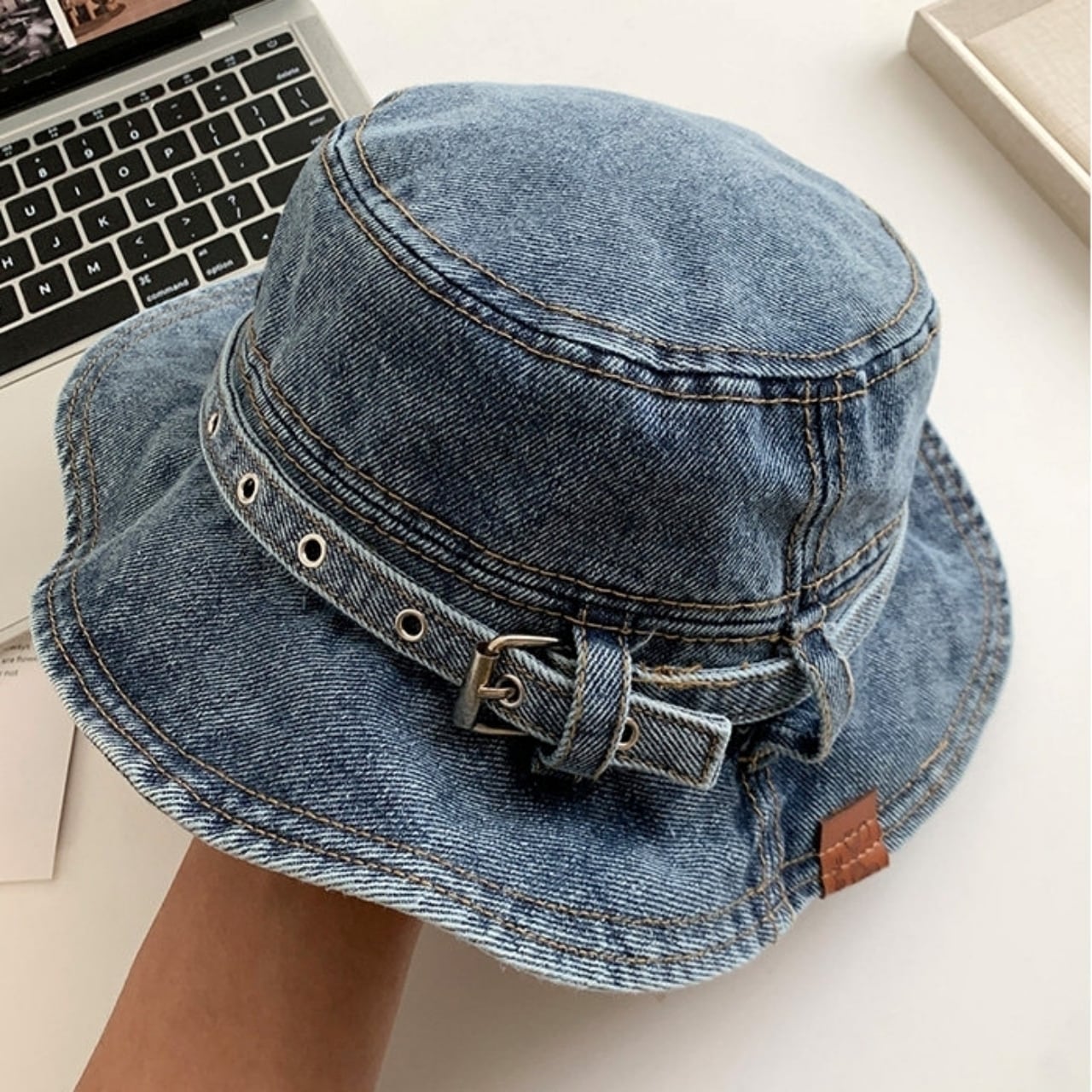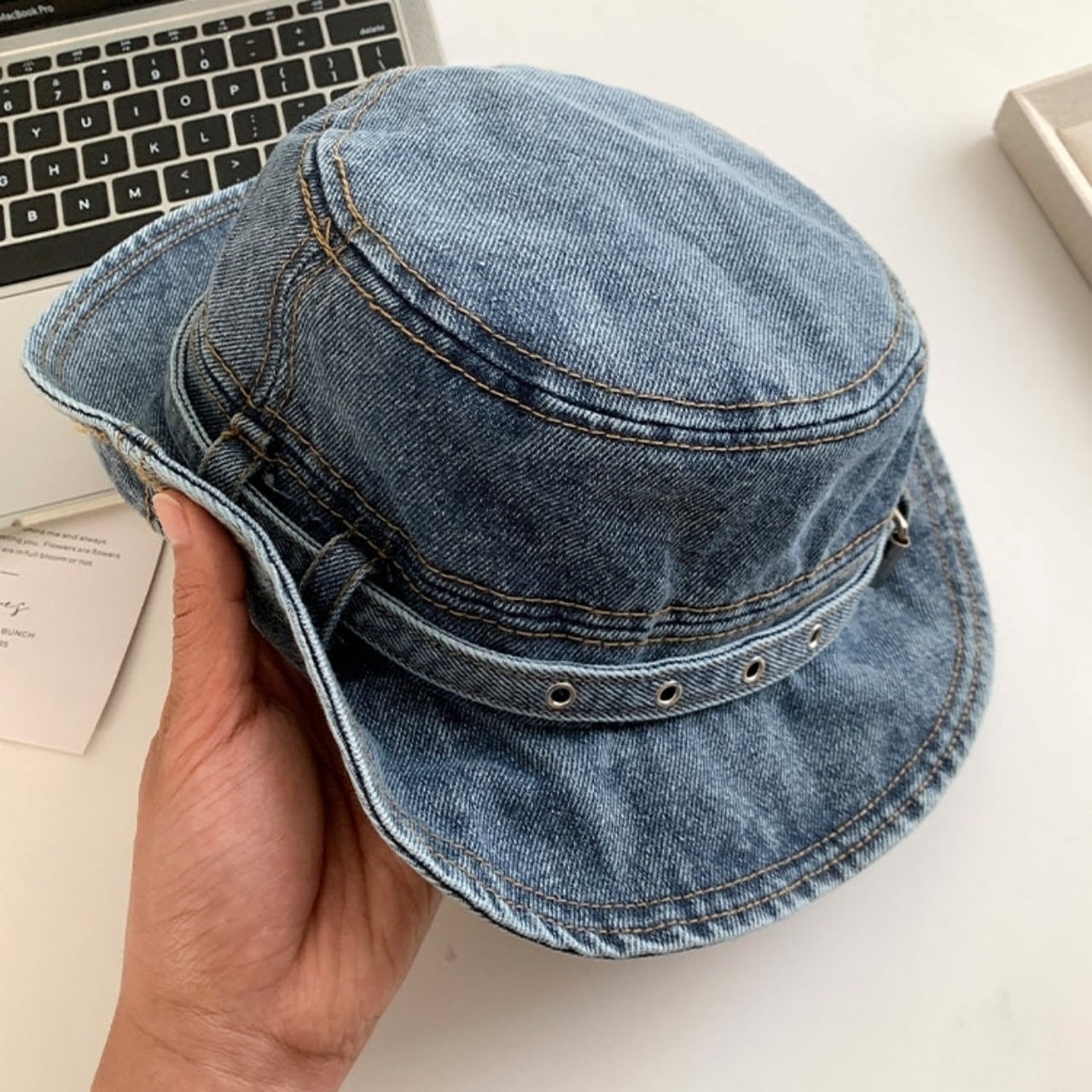 紫外線対策に最適なウォッシュドデニムハット。