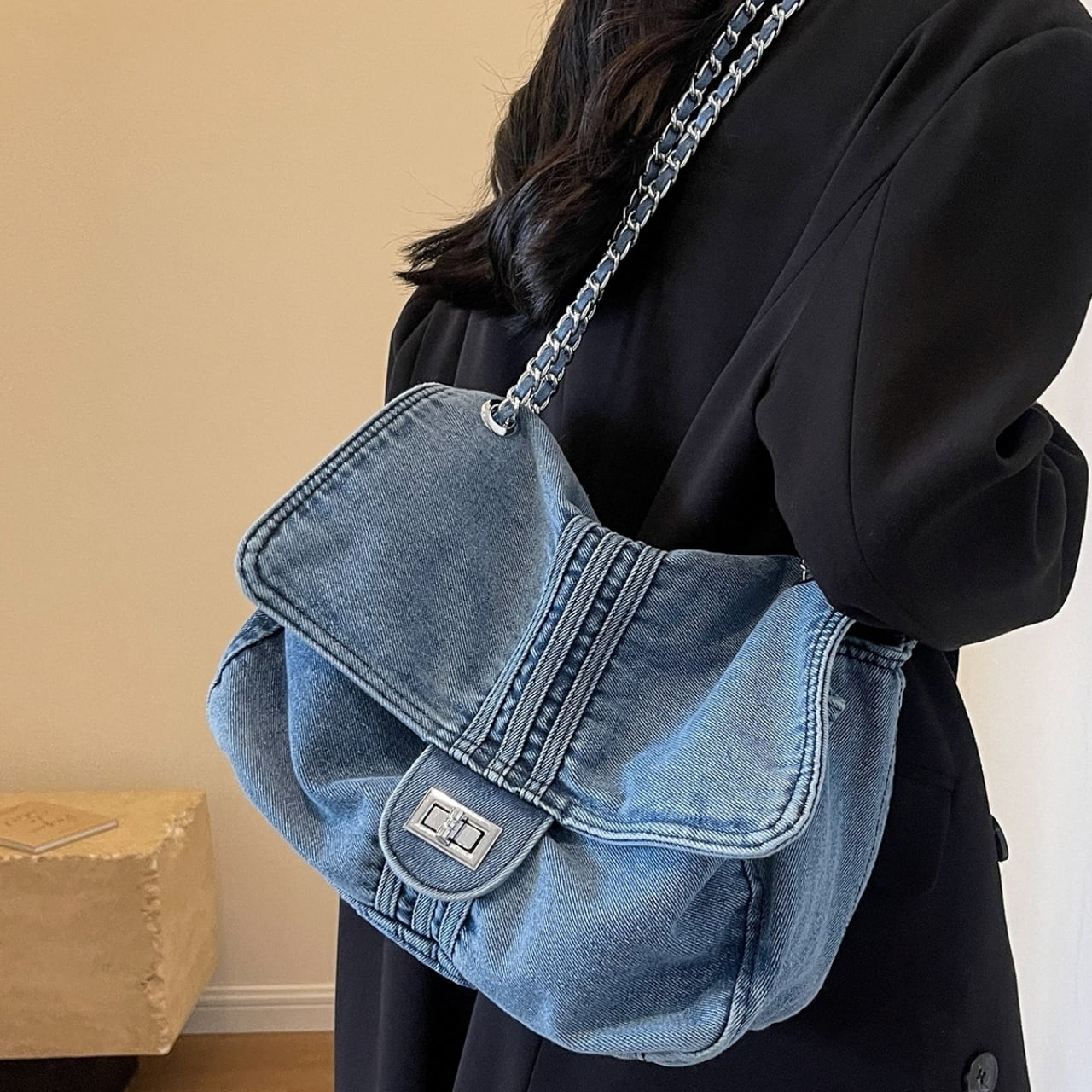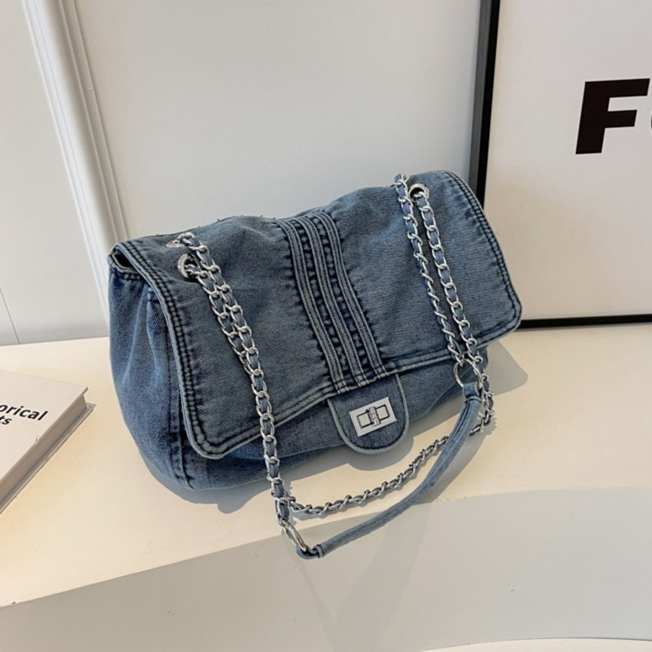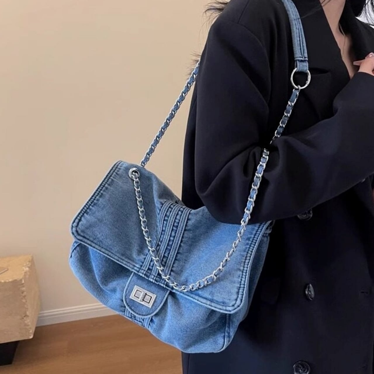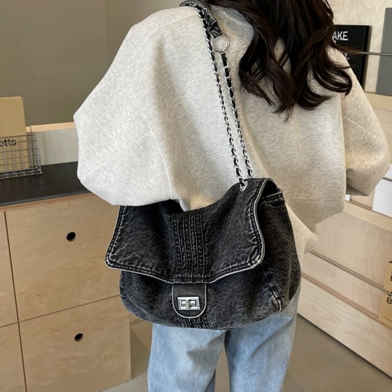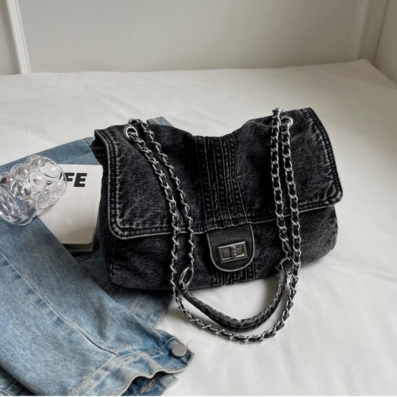 Denim chain shoulder bag D0169