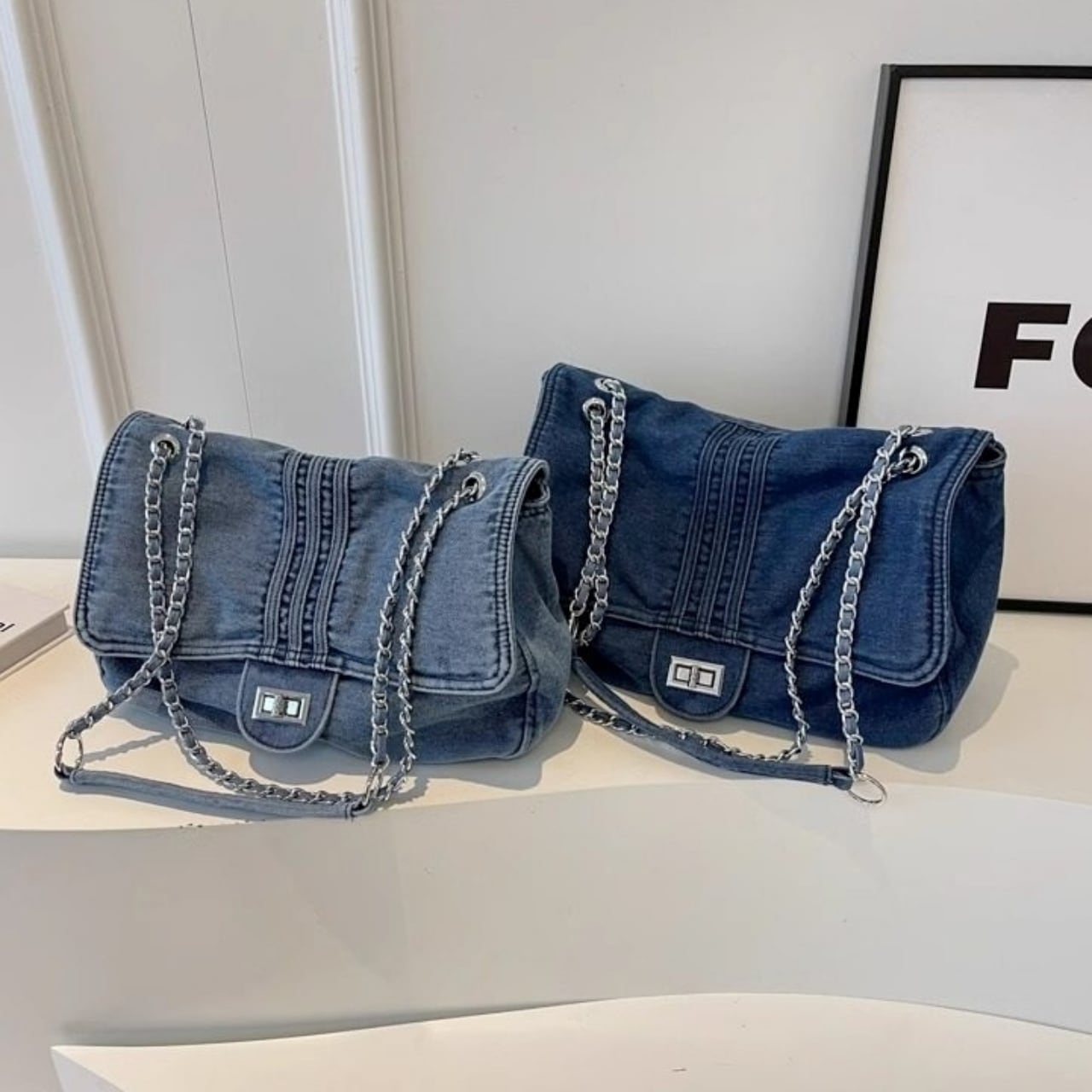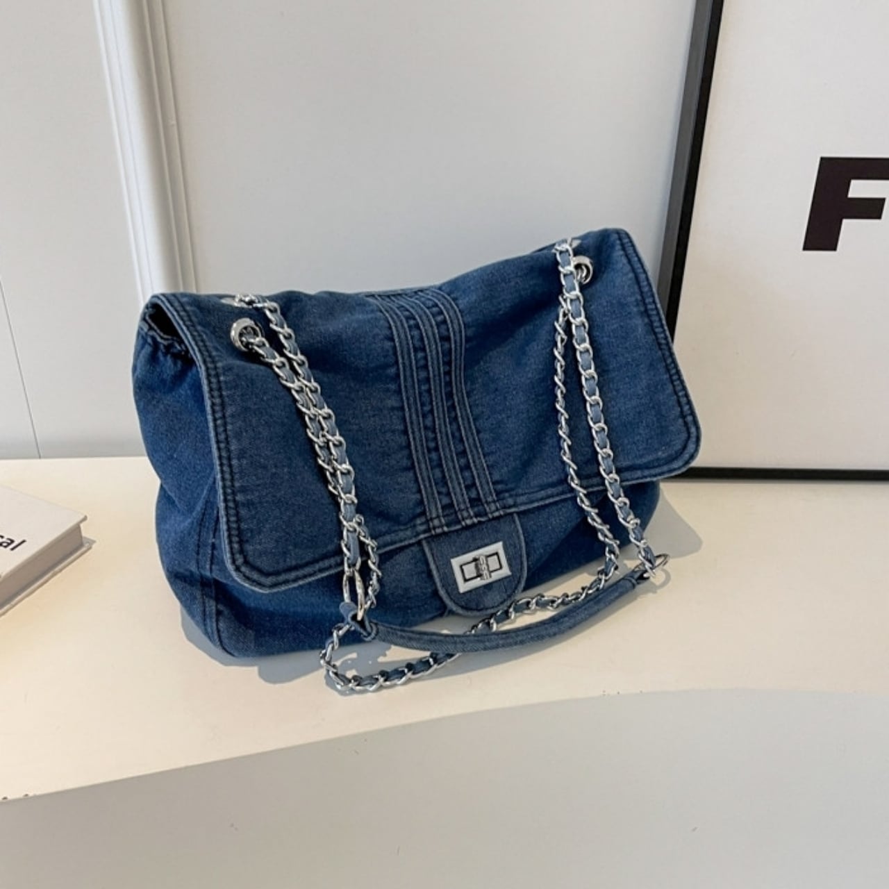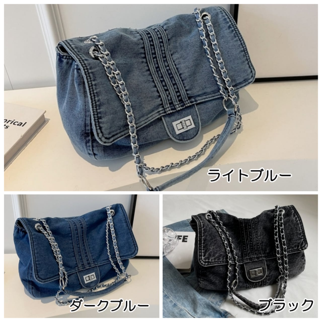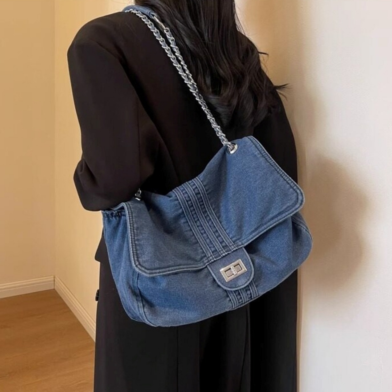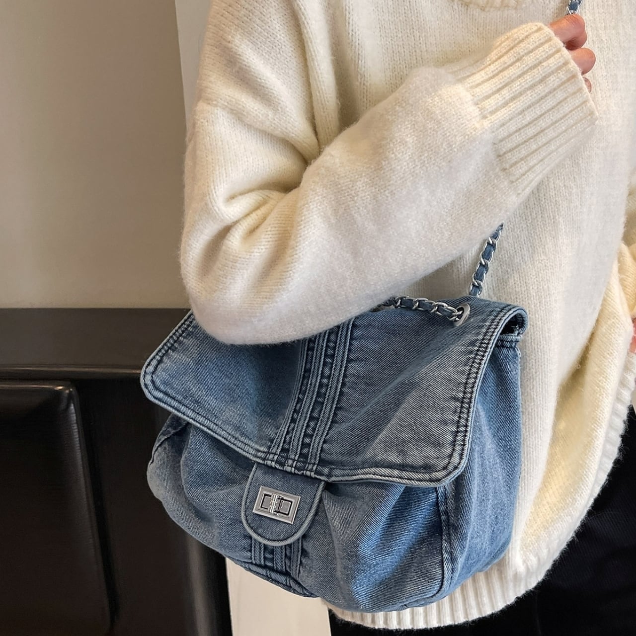 Denim chain shoulder bag D0169