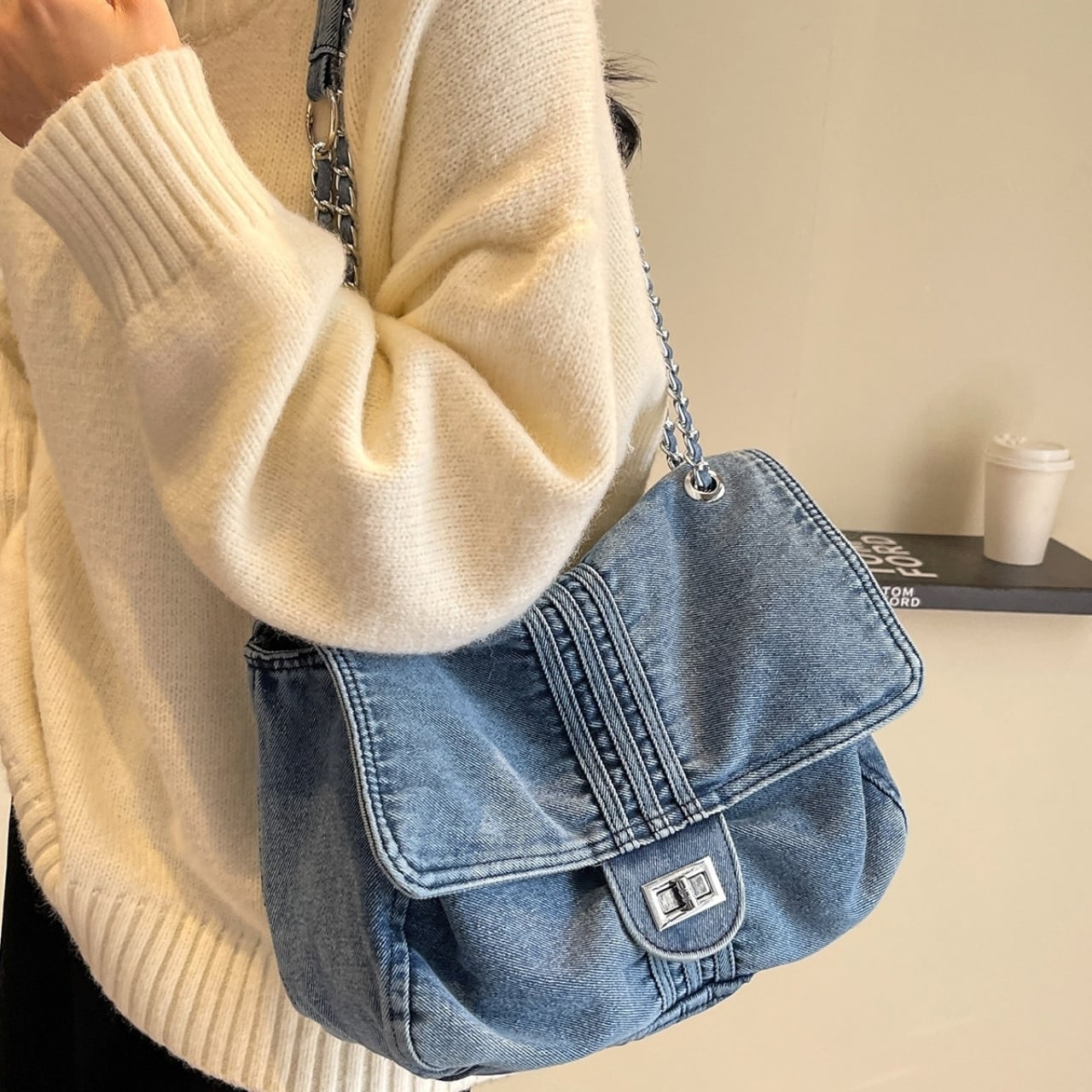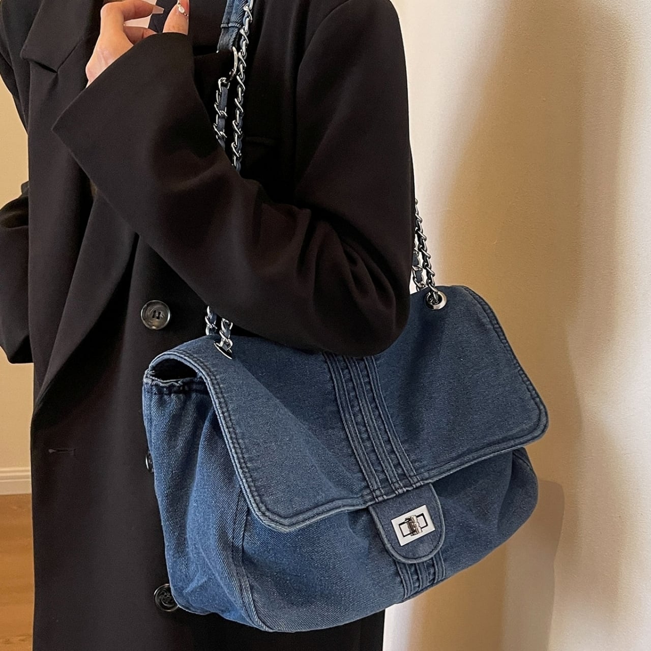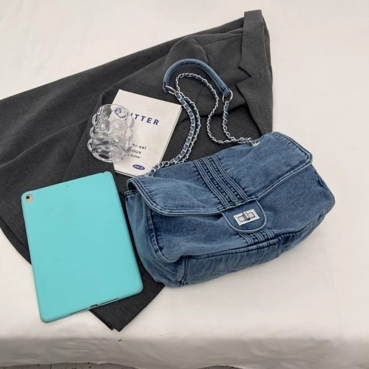 きれいめコーデにぴったりな、やわらかなデニム素材のショルダーバッグ。