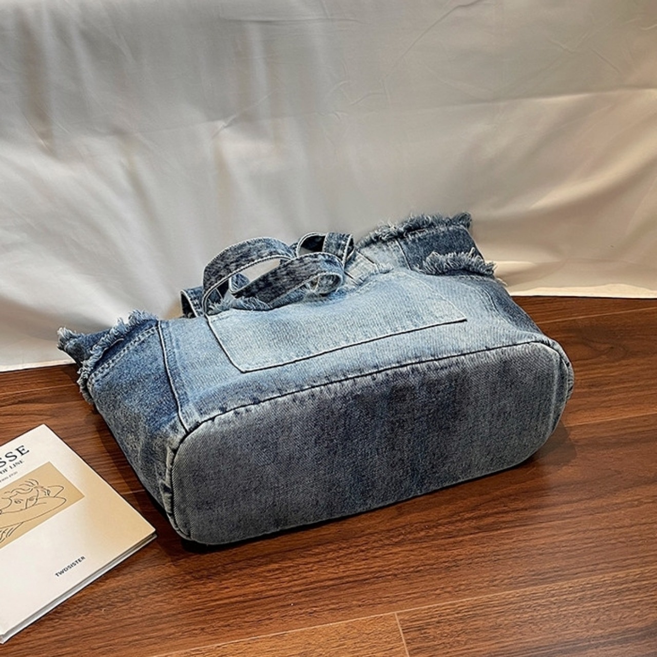 Washed denim tote bag D0170