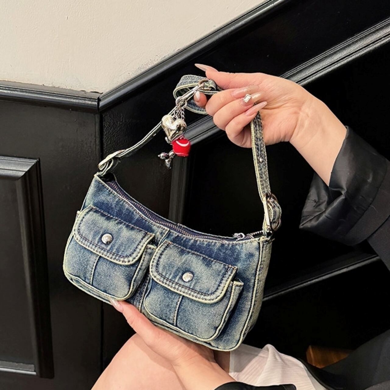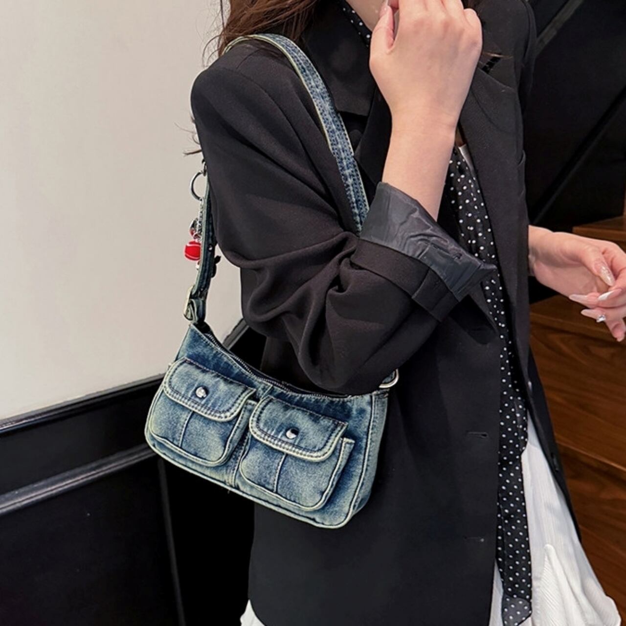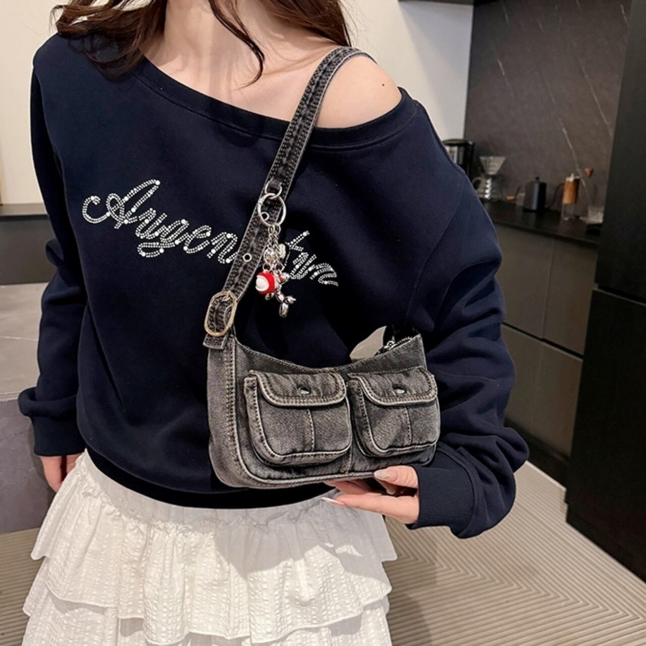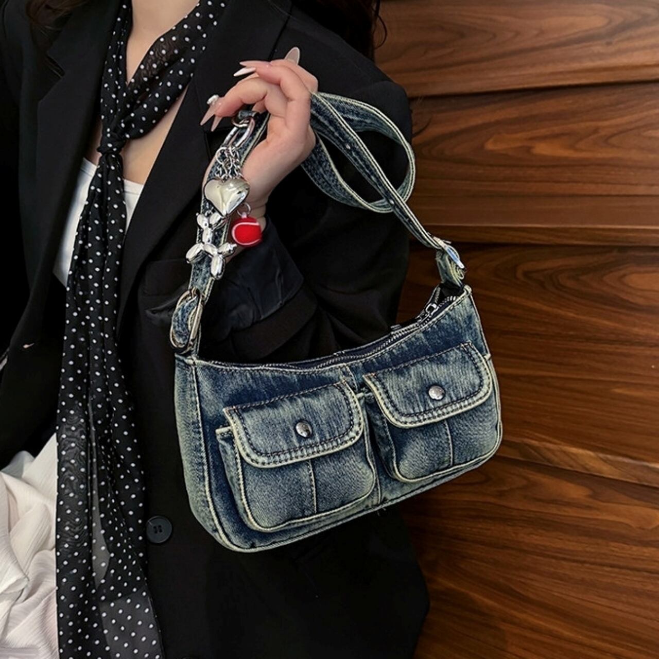 Denim shoulder bag D0171