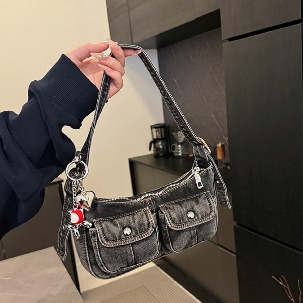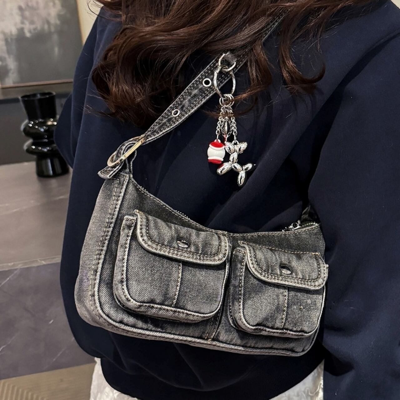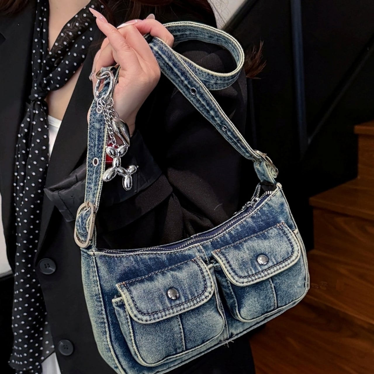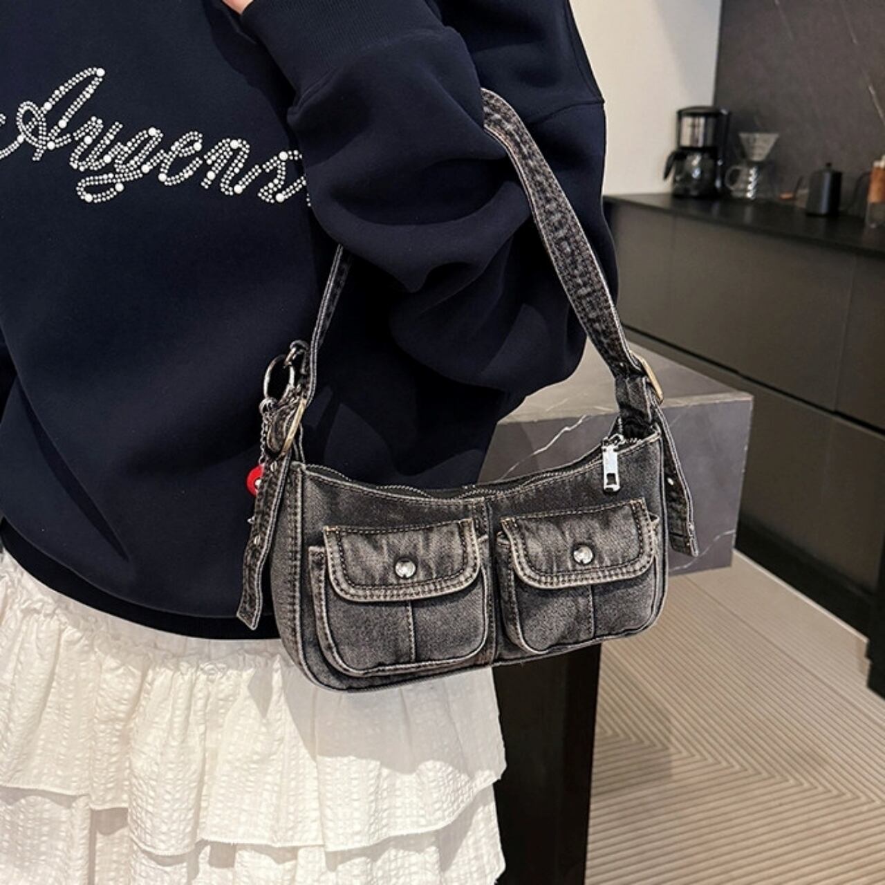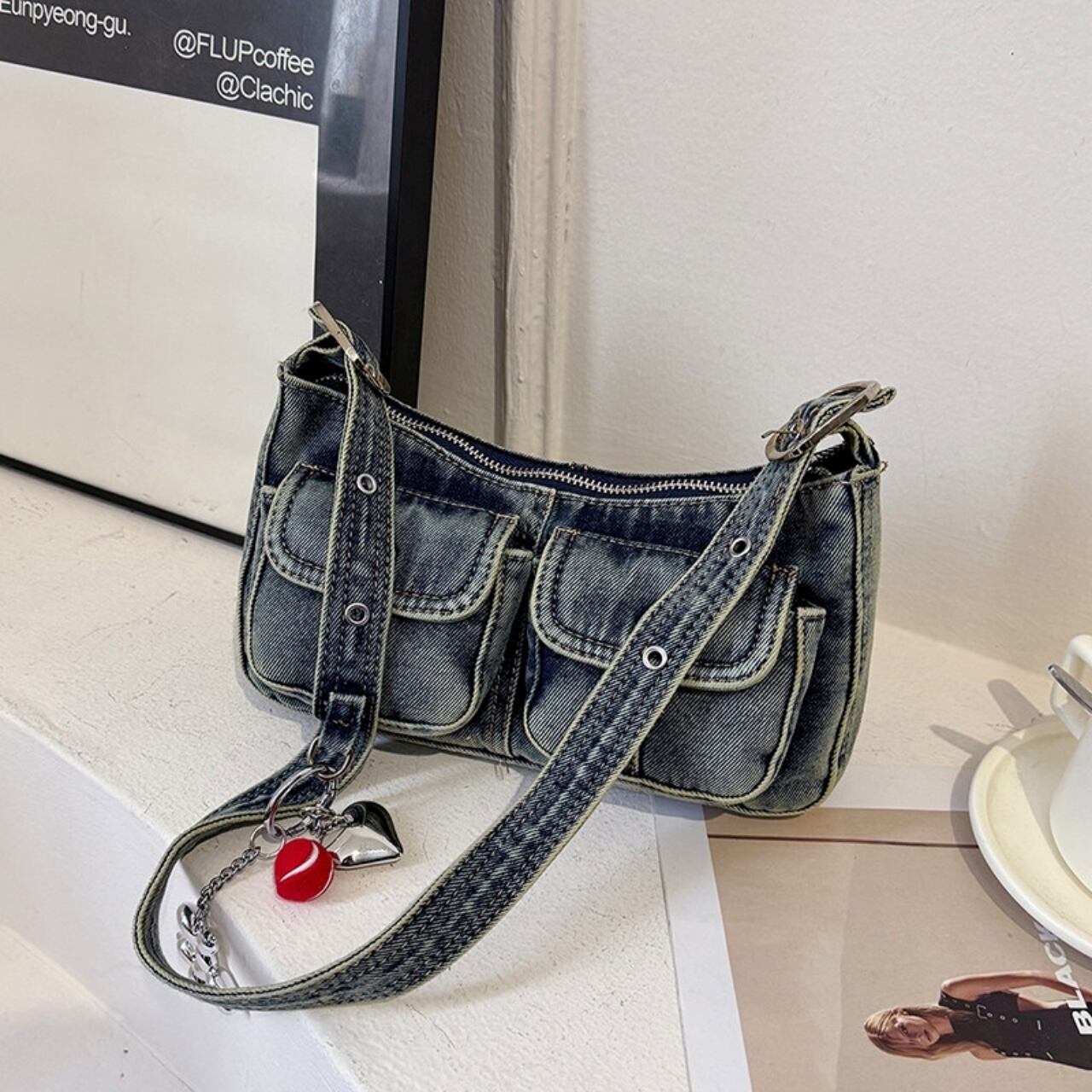 Denim shoulder bag D0171