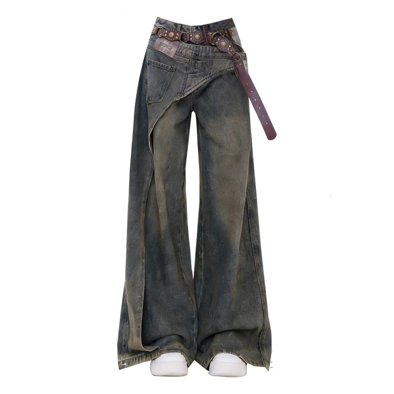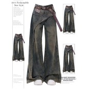 ヴィンテージ感あふれるワイドレッグデニムジーンズ。